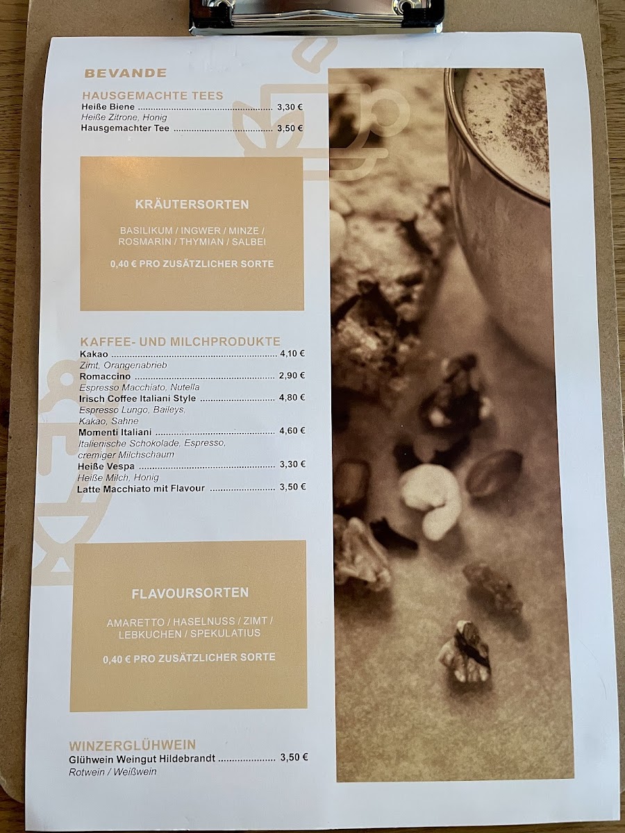 The menu at La Vita e Bella - Würzburg offers a selection of items primarily suited for breakfast and coffee breaks. Visitors can find a variety of coffee drinks, including Italian-style options and specialty coffees such as latte macchiato. The food offerings focus on light meals and breakfast dishes, featuring items like avocado toast and traditional bakery products including croissants and more regionally inspired options.